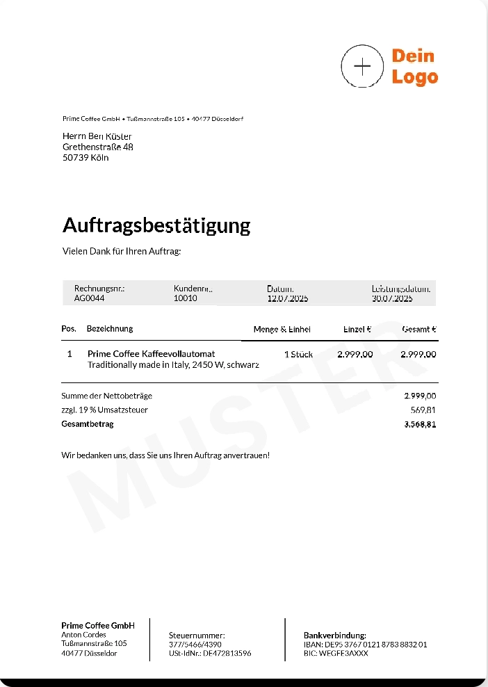 Auftragsbestätigung umwandeln,