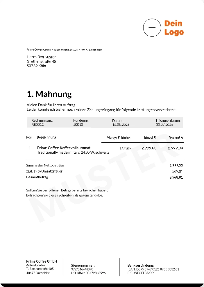 und notfalls eine Mahnung erstellen.