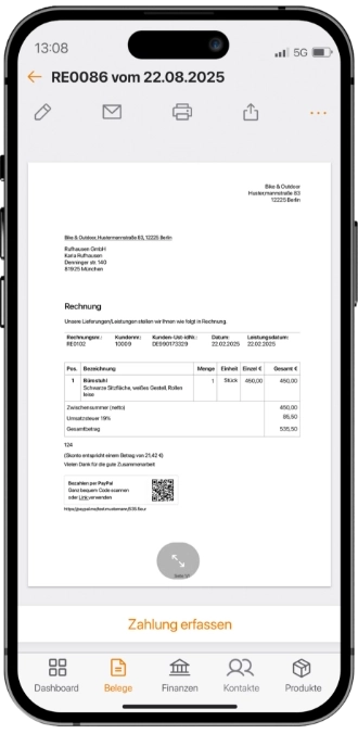 • PayPal-Zahlungen werden automatisch mit den passenden Belegen abgeglichen