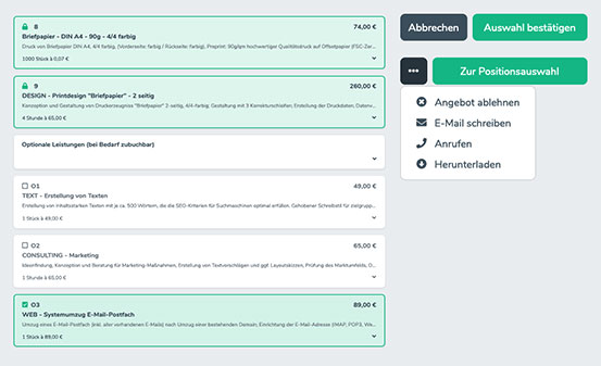• Angebote schreiben,